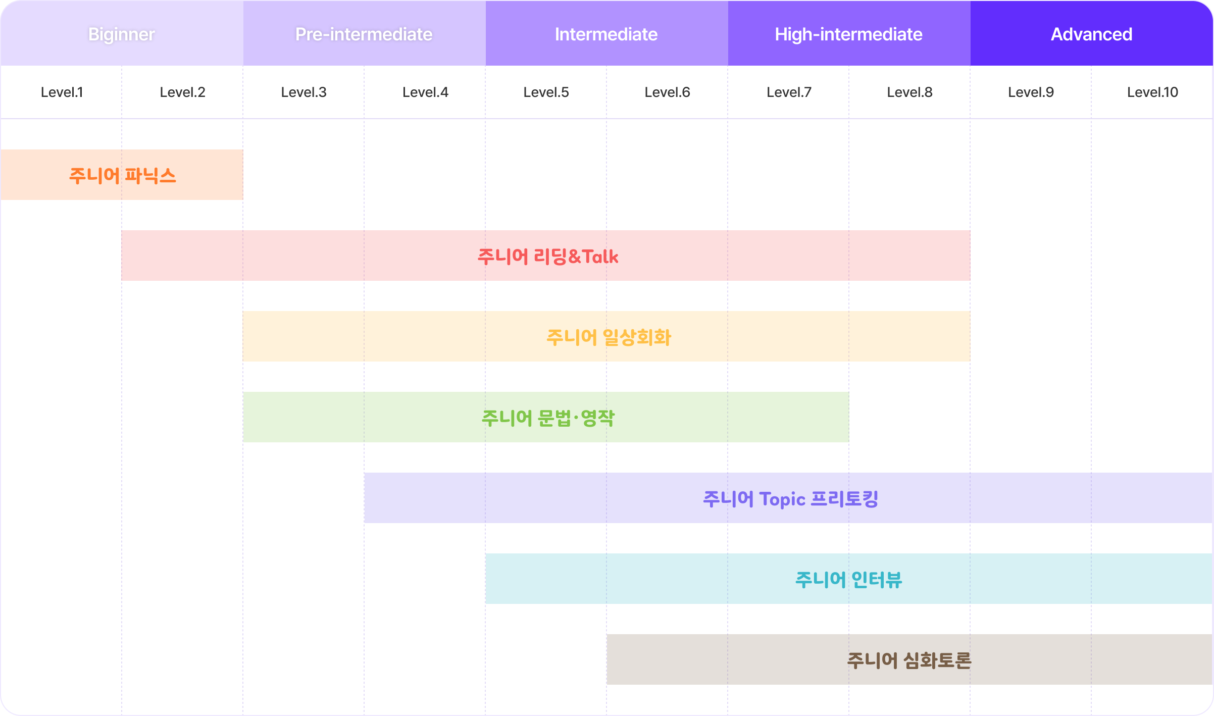 레벨평가법을 연구하여 가장 효과적이고 세분화 된 독자적 레벨평가표를 사용합니다.